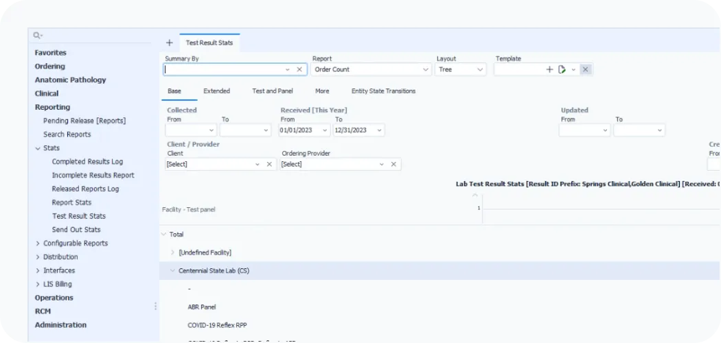 Analyze your data with our expansive library of statistical reports. This library includes hundreds of customizable templates that empower labs to gain insight into their data from multiple perspectives. Our LIS system's robust reporting capabilities allow for informed decision-making that drives efficiency and performance improvements.
